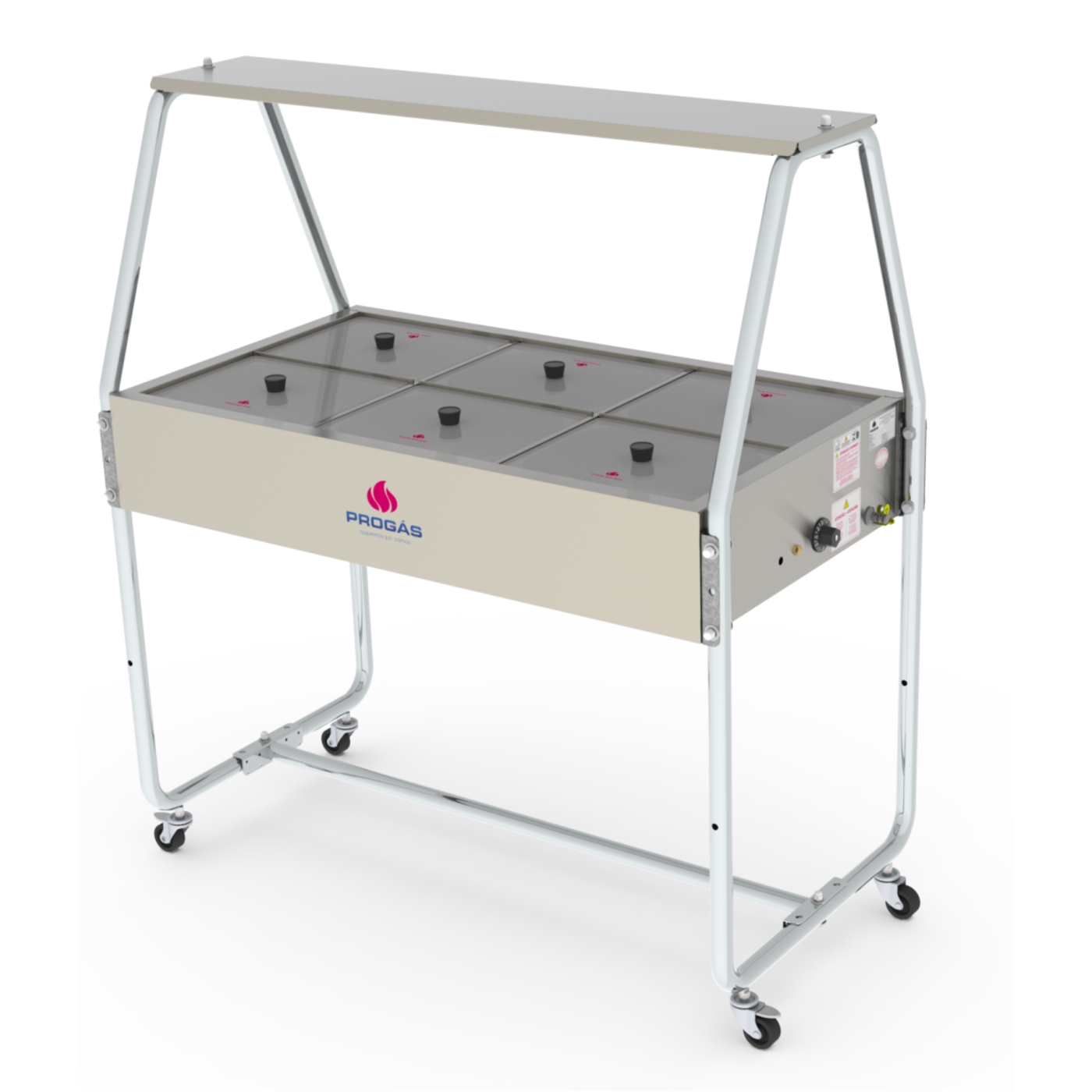 Buffet Térmico 6 Cubas Progás Tampas de Vidro 220V O Buffet térmico é ideal para manter alimentos quentes aquecidos no seu self service. Com ele é possível fazer a comercialização de diversas comidas quentes, mantendo aquecido por mais tempo pois possui controle de temperatura entre 10ºC a 80ºC!