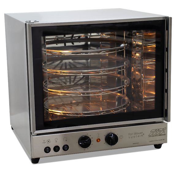 O Forno Elétrico Rotativo Titã FGE RACK 4B 220v é fácil de usar, ideal para espaços reduzidos, o Forno Rotativo assa todos os tipos de salgados e massas congeladas. Seu sistema Turbo ligado ao sistema Giratório permite assar uniformemente os produtos, além de valorizar sua exposição. Com capacidade para assar 3 a 4 assadeiras ao mesmo tempo, gera economia e baixo consumo de energia (3000W). Feito inteiramente de aço inoxidável, com rack de aço carbono niquelado, timer que ajuda no controle do tempo e certificação INMETRO.