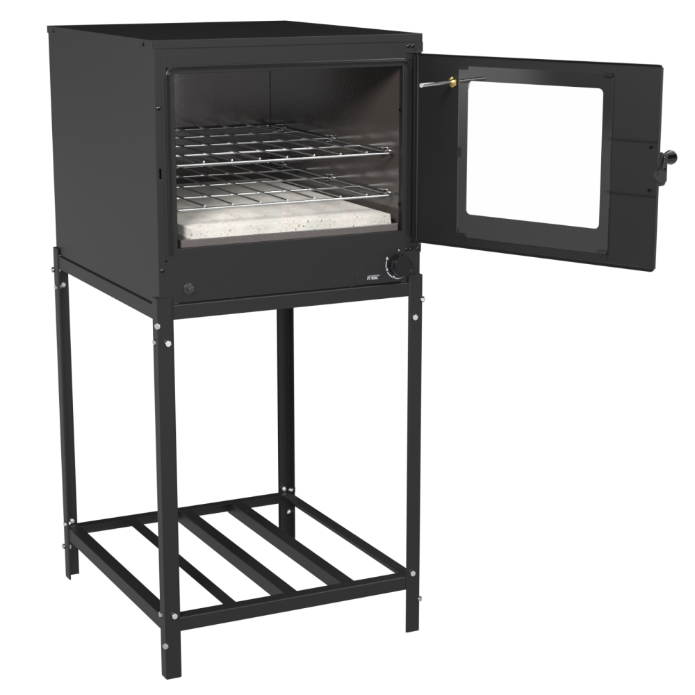 Forno Industrial FI 109 com Base, Base Desmontável,Gás Glp Baixa Pressão, Duas Prateleiras Reguláveis, Porta do Forno com Visor e Tranca, Interior Esmaltado.