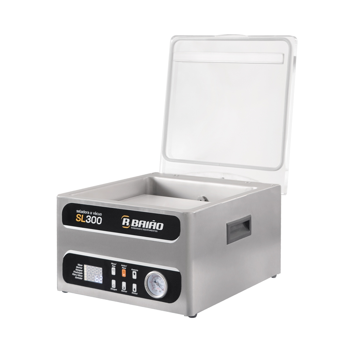 - Painel Digital Inteligente: Controle total e preciso dos ciclos. Permite programar os tempos de vácuo, selagem e resfriamento conforme a densidade e o tipo de alimento, garantindo padronização na produção.